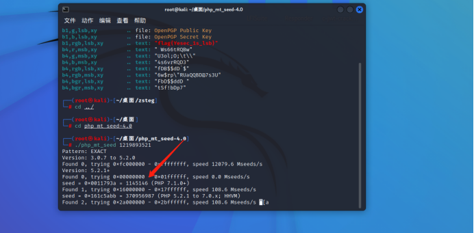 题目给出了源码,而且还给出了一个随机数的值。所以我们使用php_mt_seed查看其种子的值。