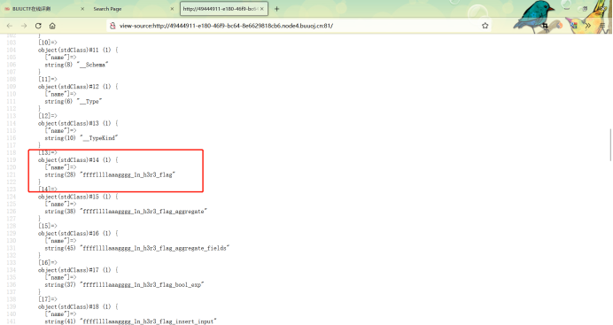 这里是后面提示了才知道是GraphQL,所以还去学习了一下GraphQL的基本语法,首先使用id=1&data={"query":"query{\n __schema {\n types {\n name \n }\n}\n}\n", "variables":null}得到flag所在的位置