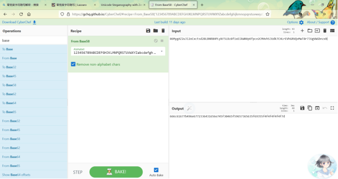 得到隐写内容之后进行解码,一直以为是base64编码,后来才试出来是base58编码
