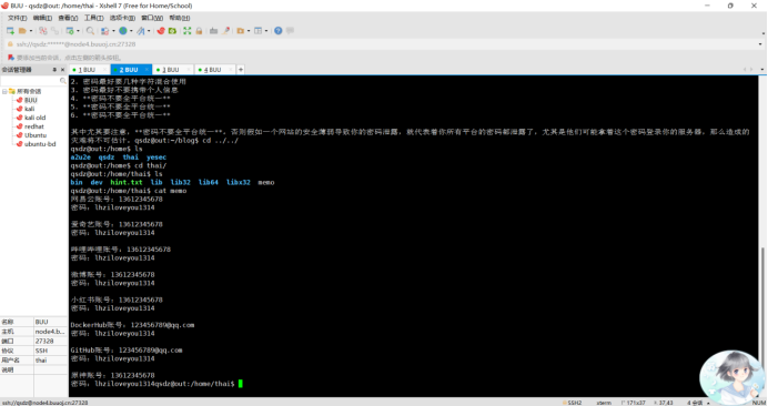 在用户thai的用户目录发现hint,但是打不开,通过查看memo文件可以得到密码进而得到hint