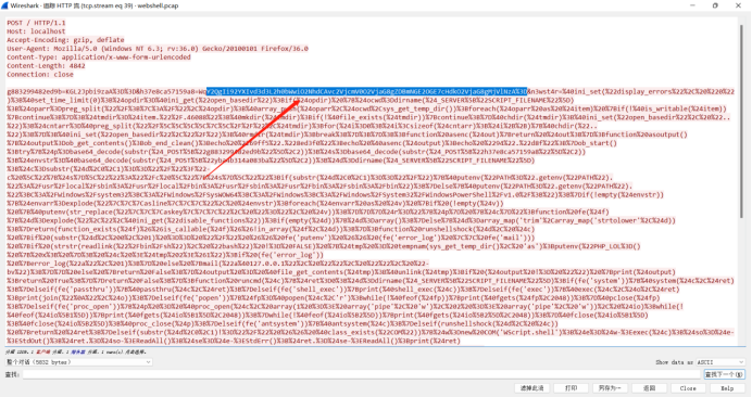 接下来似乎好像就得看经验了,师傅说蚁剑的流量要看最长的那串base64解码就可以,并且一般是该参数两位之后的才是正确的命令的base64编码