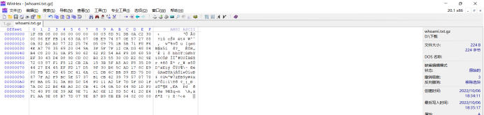 将获取的16进制数据放到winhex中,保存为whoami.txt.gz文件