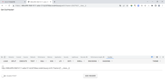1 | 所以我们使用?name={{''['cla'+'ss']}}进行绕过,然后使用 |