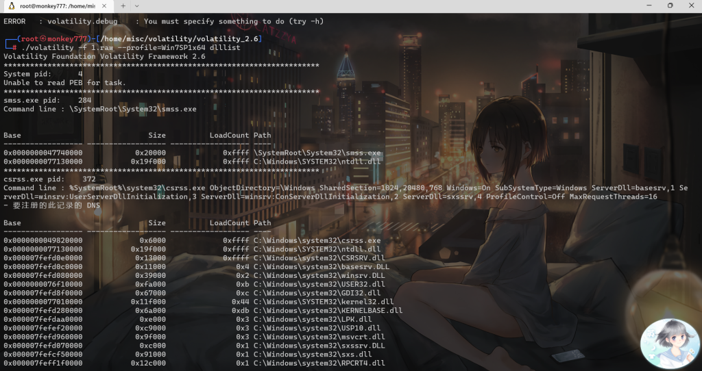 ./volatility -f 1.raw –profile=Win7SP1x64 dlllist