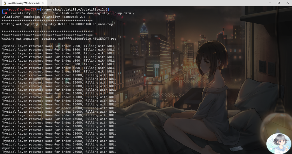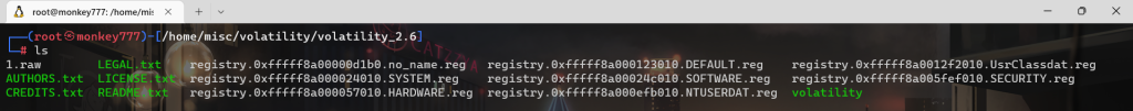 ./volatility -f 1.raw –profile=Win7SP1x64 dumpregistry –dump-dir=./
