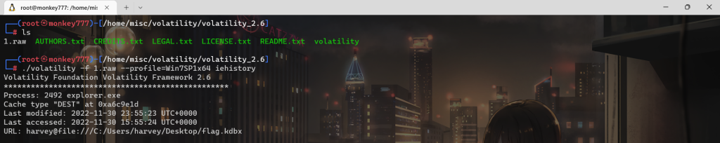 ./volatility -f 1.raw –profile=Win7SP1x64 iehistory