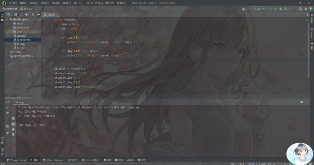 - 当我们使用类对象调用方法时,self会自动被python传入